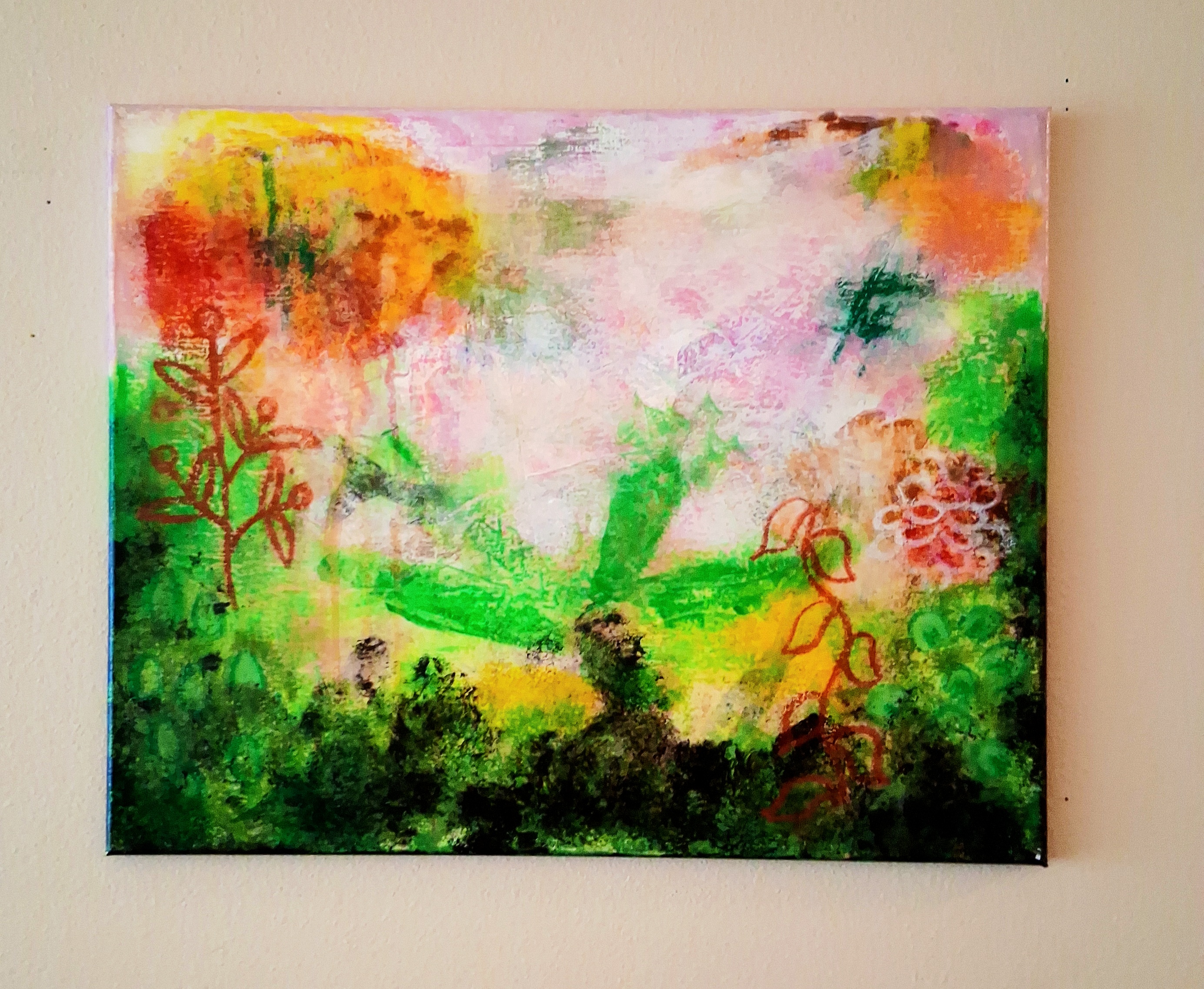 I hand paint each piece of art on prepped canvases using acrylic paints. My area of operation is in a tiny designated spot of my apartment in Seattle. My paintings start with an idea or a vision, and I take that vision to it's fullest fruition. It is my hope that my art captures your eye as well as your imagination.